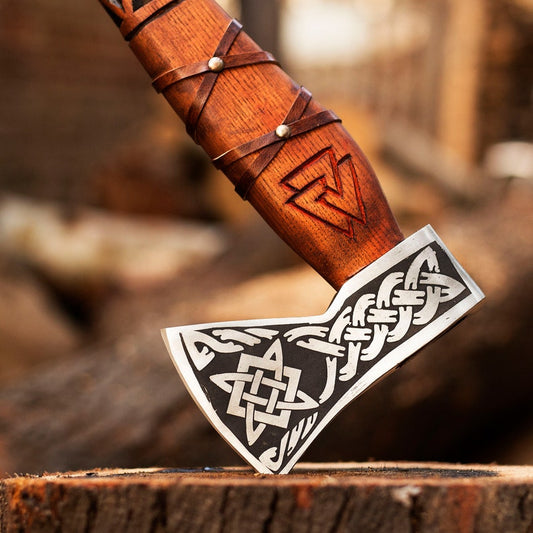 Engraved Ragnar Axe with leather cover | Best throwing Axe