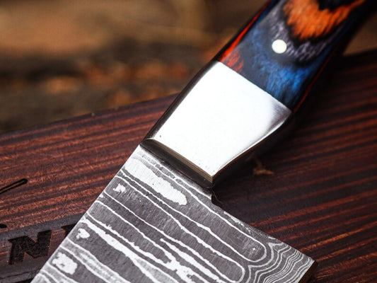 Damascus Skinner Knife with leather cover | Best chef knife | Best wedding Gift