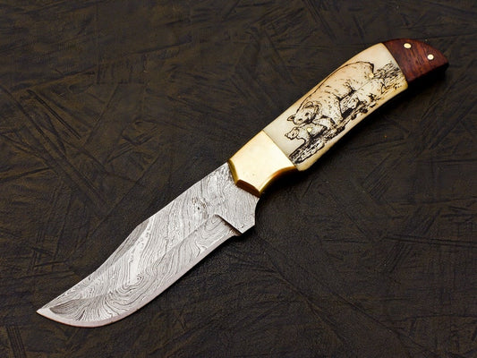 Handmade Damascus Knife with Leather cover | Best Hunting knife