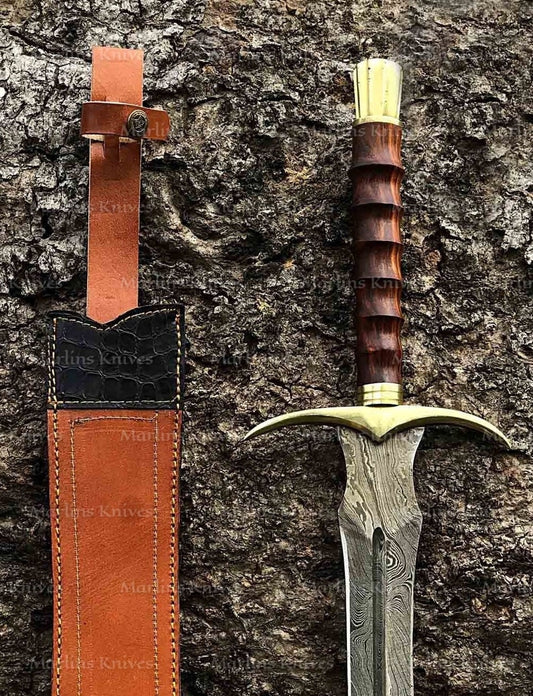 Beautiful Custom Handmade Damascus Steel Sword with Leather cover