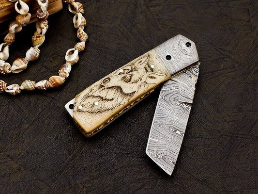 Handmade Engraved Bone handle knife with cover | Best wedding gifts