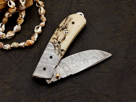 Handmade Damascus Steel Pocket Knife | Hand Forged Damascus Knife